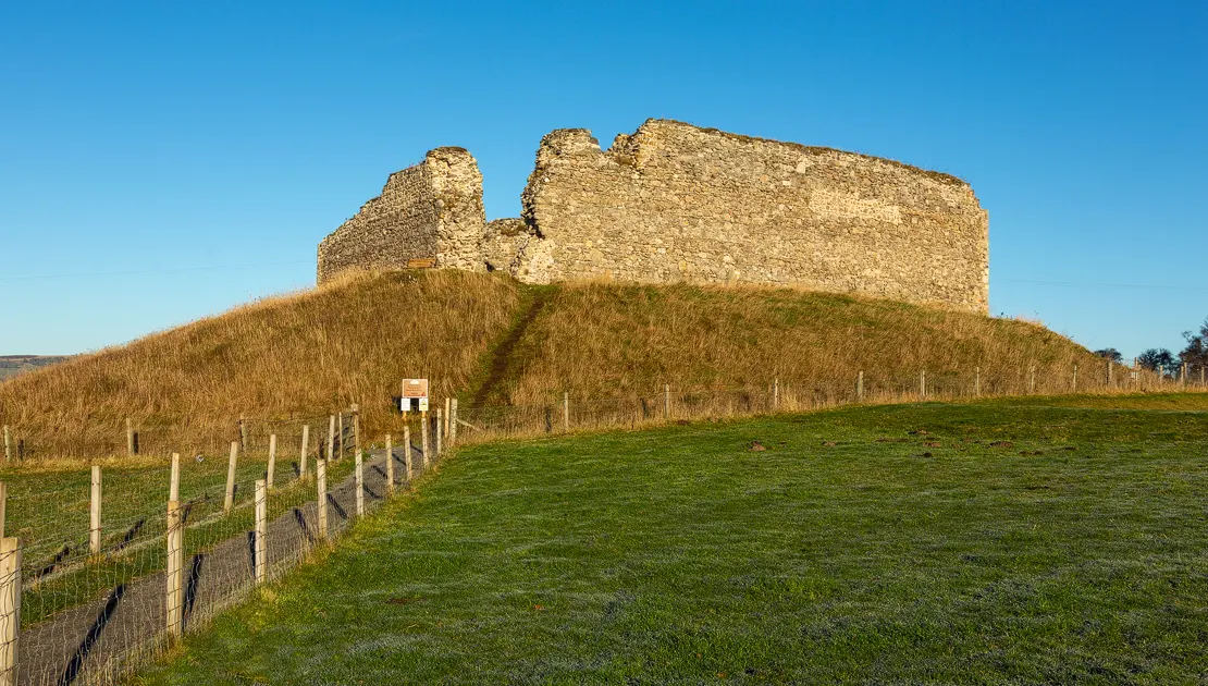 The official entrance is the best way to access the castle, there is an information board, and the archway has been finished off with metal bordering to make it safe from falling masonry.