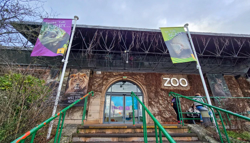 The entrance building sits just back from the main road, up a short flight of stone steps flanked by colourful banners advertising the zoo’s residents. We’d pre-booked our tickets online, which saved a few pounds compared to the walk-up price. After scanning our tickets, we headed through and up the first set of steps into the zoo itself.