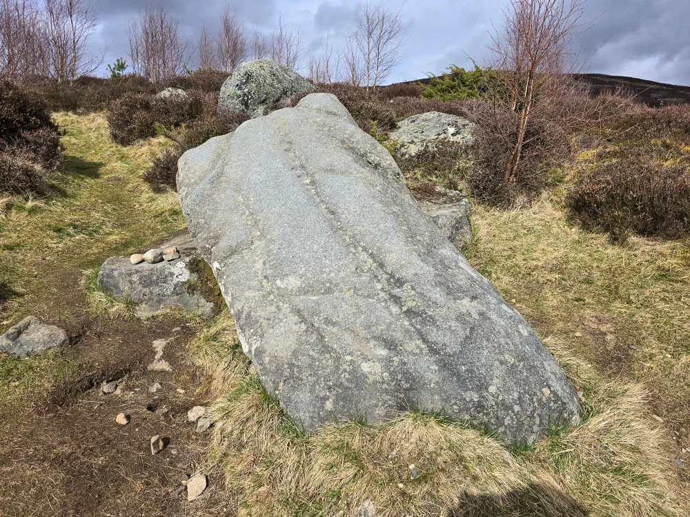 Janette and I visited the Ringing Stone on a typical Scottish spring day – overcast skies with that wonderful clarity of light that makes the heather and moorland glow. We approached from Ballater, taking the A939 north towards Tomintoul. The drive itself is spectacular, winding through the Cairngorms National Park with views of rolling heather-clad hills and distant mountains.